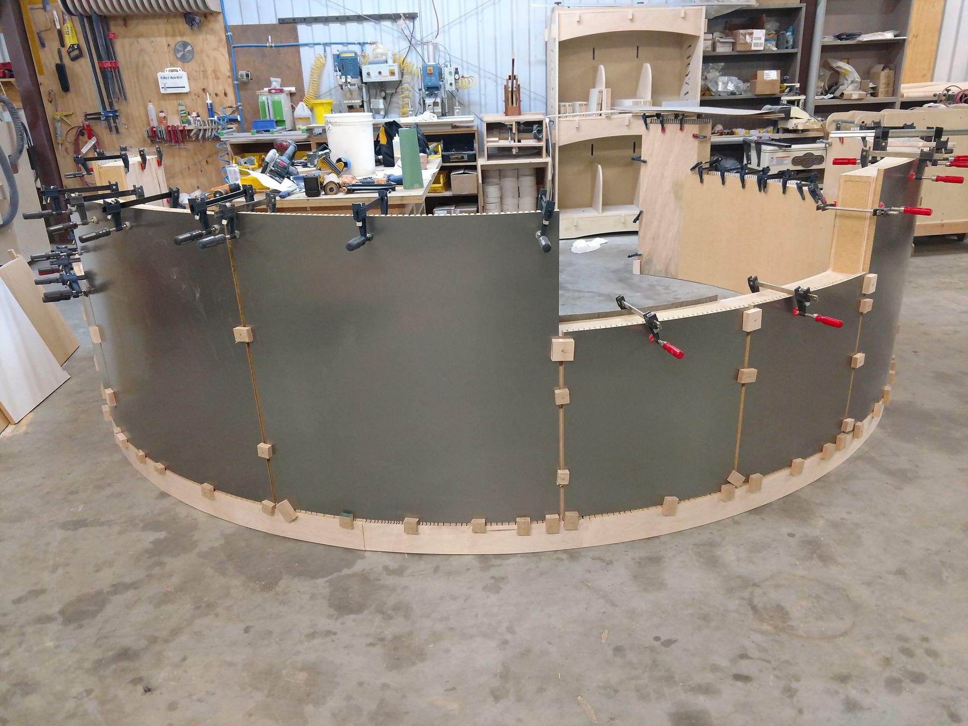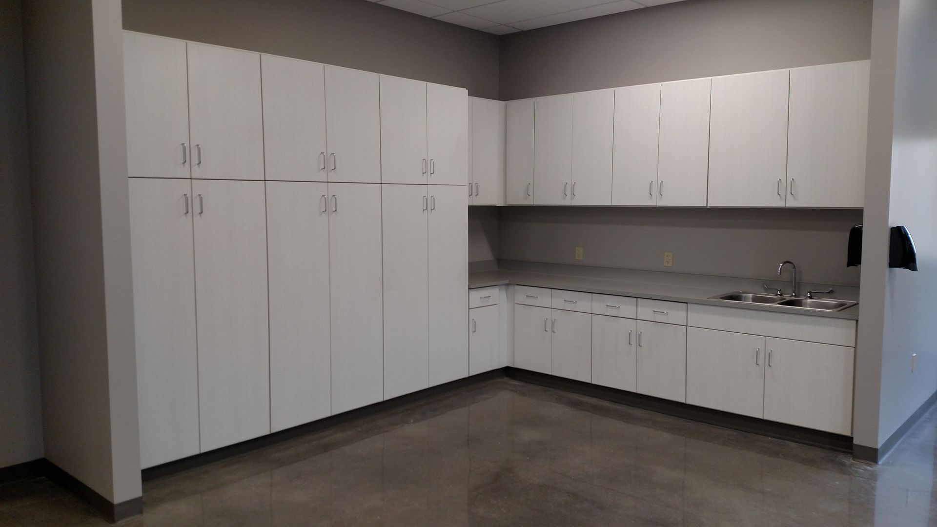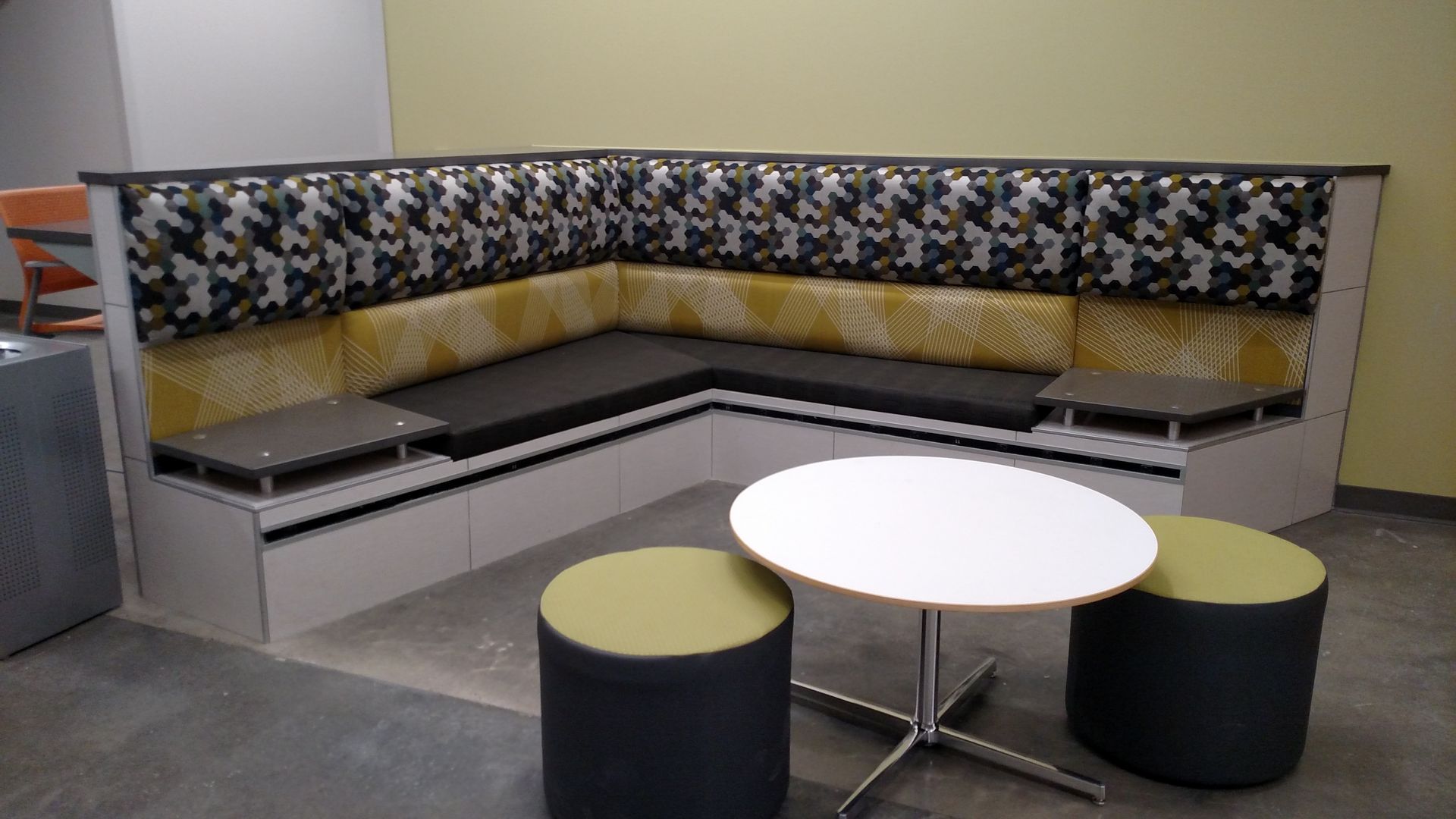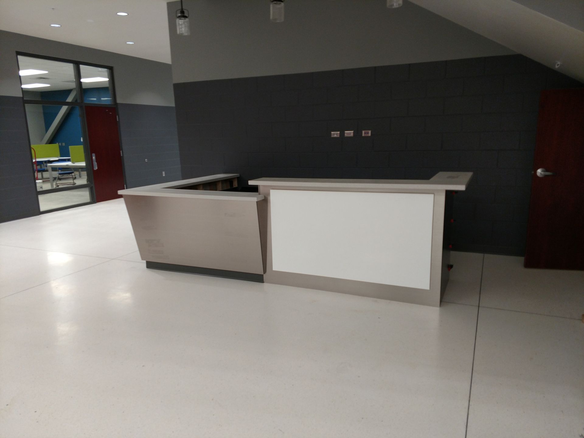 This custom reception area was designed to make a bold first impression. Featuring clean lines, high-quality materials, and seamless integration of branding elements, it reflects the company’s professional identity while maintaining functionality and durability for high-traffic use.